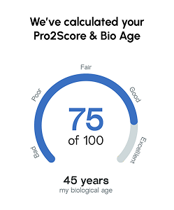 Kendi verilerinize ve günlük alışkanlıklarınıza dayanarak mevcut Pro2Score™’unuzu, alt skorlarınızı ve biyolojik yaşınızı ortaya çıkarın.